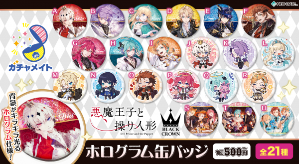 アニメイト通販「ガチャメイト」から、BLACK CROWNがお贈りする悲しくも儚いダークファンタジー『悪魔王子と操り人形』の"ホログラム缶バッジ"が登場です。