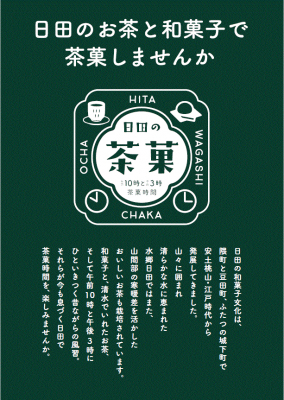 一般社団法人日田市観光協会は、日田市内和菓子店6軒と、製茶園1軒などと共同で、「日田の茶菓(日田の茶菓キャンペーン)を実施します。