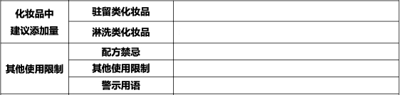 (3) 中国化粧品安全技術規範に基づく配合の禁忌、制限。