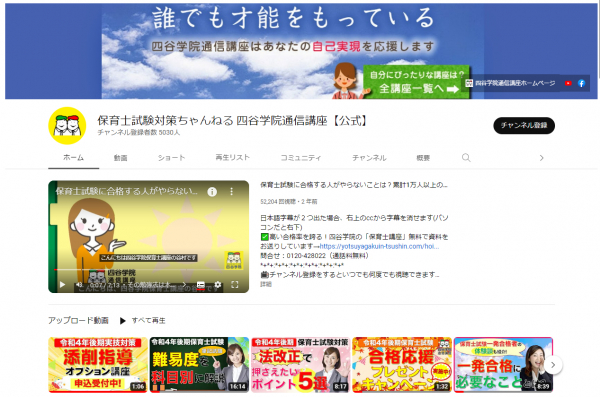保育士試験受験者をサポート&応援するチャンネルとなっています。