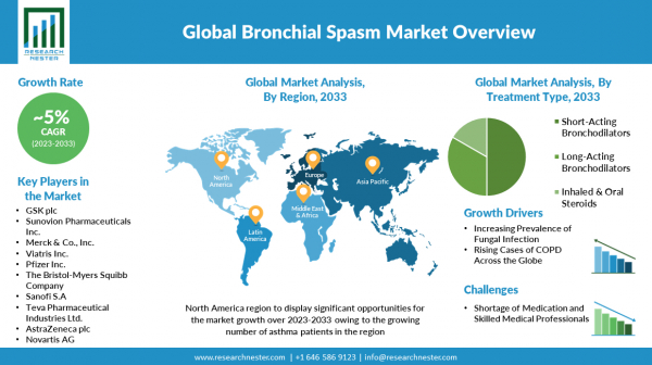 Research Nester Private Limitedは、世界の気管支けいれん市場の予測評価を提供する調査レポートを2022年11月 07日 に発刊しました。これは、世界の気管支けいれん市場の成長ドライバー、市場機会、課題、脅威など、いくつかの主要な市場ダイナミクス強調しています。