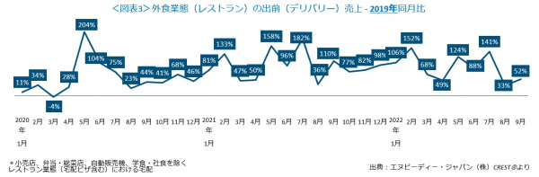 出前(デリバリー)は2019年同月比52%増