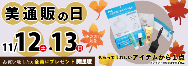 ※11月13日(日)は、インターネットとFAXのみ受付、美通販池袋店は休業日のため対象外となります。