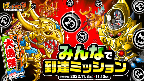 株式会社アソビズム(本社:東京都千代田区、代表取締役:大手智之)は、App Store・Google Playにて好評配信中の『城とドラゴン』で、「みんなで到達ミッション」を2022年11月8日(火)より開催いたします。
