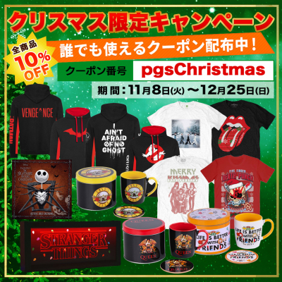 音楽、映画、ドラマ、コミック、スポーツなど日本最大のエンターテイメント公式グッズ・ストアPGSを運営する株式会社JAMSHOPPINGは、日頃の感謝を込めて2022年11月8日(火)~12月25日(日)まで全商品10%OFFとなるクーポンを配布する、クリスマス限定キャンペーンを実施中です。