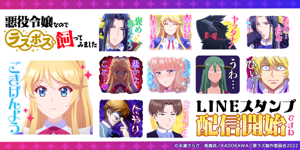 是非、LINEスタンプでもTVアニメ「悪役令嬢なのでラスボスを飼ってみました」の世界観をお楽しみください!