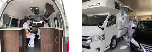 そこで当社では以前より総合病院・クリニックでの院内感染、クラスターの発生を防ぐ為、機動性に優れ、設置や撤去までに時間を要さない「メディカルキャンピングカー」を発熱外来の専用施設として導入をしてきました。