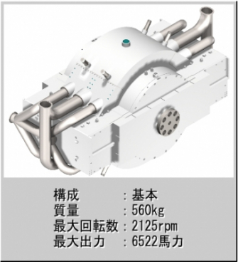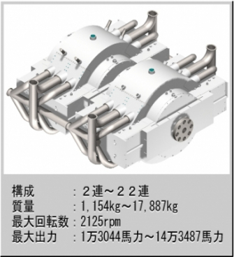 大型船舶用2サイクル6960~3万9600馬力ディーゼルエンジン(重量が86~845トン)と出力性能が同