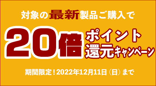 対象製品は、2022年11~12月発売の製品。これらの購入時に付与されるポイントが通常の20倍となる20%還元となります。