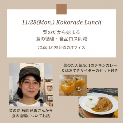 おいしいランチ(チキンカレー&ほおずきサイダーのセット)を食べながら、少しだけ学びも!という趣旨のカジュアルなイベントです。