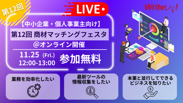 ・タイトル:【中小企業・個人事業主向け】第12回 商材マッチングフェスタ@オンライン開催
