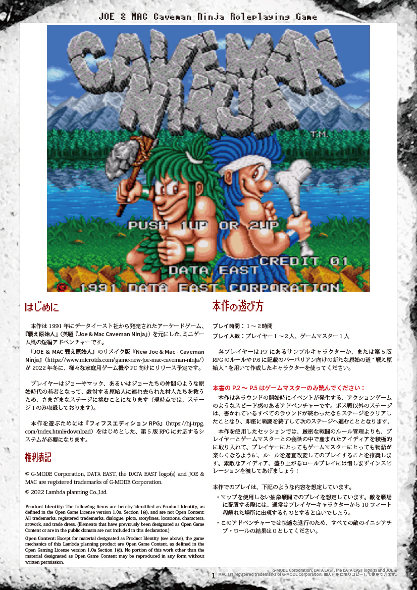 今冬にリメイク作品『New Joe & Mac - Caveman Ninja』を発売予定の名作アクションゲーム『戦え原始人 JOE & MAC』(英題『Joe & Mac - Caveman Ninja』)と、基本無料で遊べるTRPG『フィフスエディションRPG』がコラボレーション! 制作は弊社の過去のTRPG動画配信でもご協力をいただいた、デジタル・アナログゲーム企画制作会社ラムダ・プランニングです。