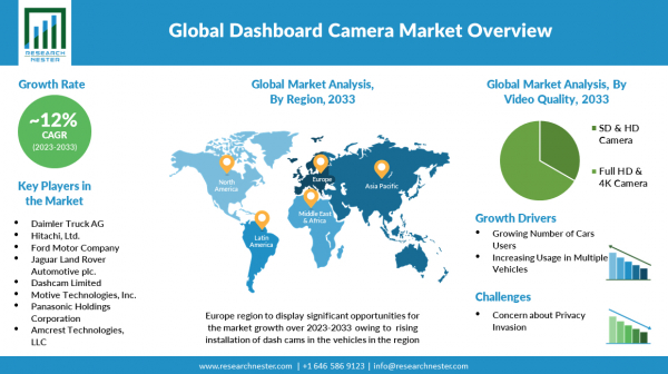 Research Nester Private Limitedは、ダッシュボードカメラ市場の予測評価を提供する調査レポートを2022年11月 17日 に発刊しました。これは、ダッシュボードカメラ市場の成長ドライバー、市場機会、課題、脅威など、いくつかの主要な市場ダイナミクス強調しています。