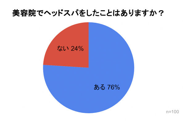 美容院でヘッドスパをしたことがある人の割合を調査したところ、76%と多くの方が美容院でヘッドスパ経験があることがわかりました。