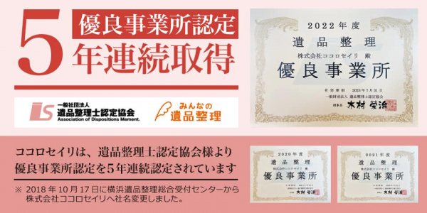 遺品整理士認定協会より優良企業認定