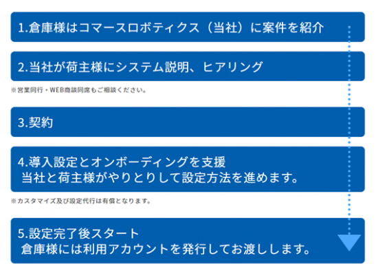・弊社システムをご利用頂く荷主様が、倉庫様からのご紹介を受けたものであること。