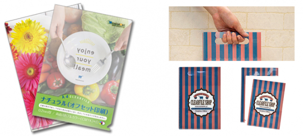 ひと味違った素材や形のクリアファイルも印刷可能。