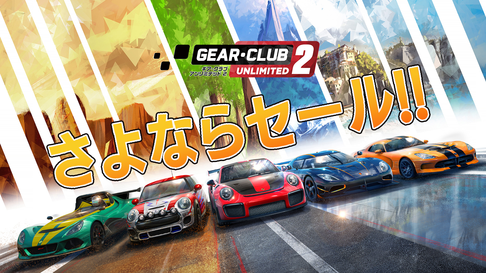株式会社3goo(サングー)(本社:東京都渋谷区、代表取締役:ディ・コスタンゾ ニコラ)は本日、Nintendo SwitchTM専用ソフト『ギア・クラブ アンリミテッド2』のダウンロード版について、ゲーム本編と、すべての追加コンテンツが入った「まるごとパック」のそれぞれを税込100円で販売する「さよならセール」を、2022年12月13日まで開催することを発表いたしました。これまで、非常に多くのお客様に『ギア・クラブ アンリミテッド2』をご愛顧いただき、誠にありがとうございました。