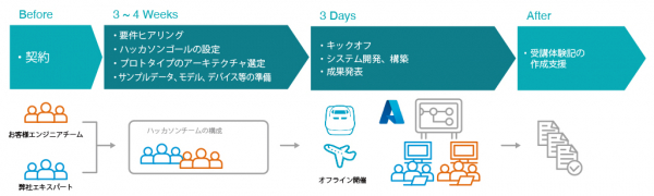 期間 準備期間とハッカソンを実施する3日間で約1ヶ月~