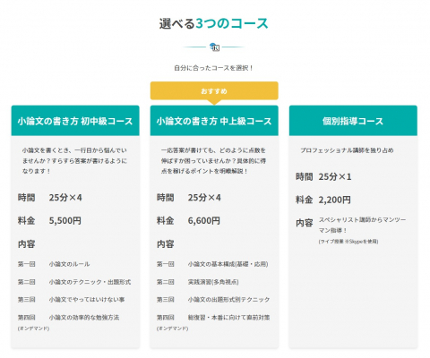 そのような方はぜひ、オンライン家庭教師と共に小論文の書き方が学べる、本コースの受講を検討してみてください。