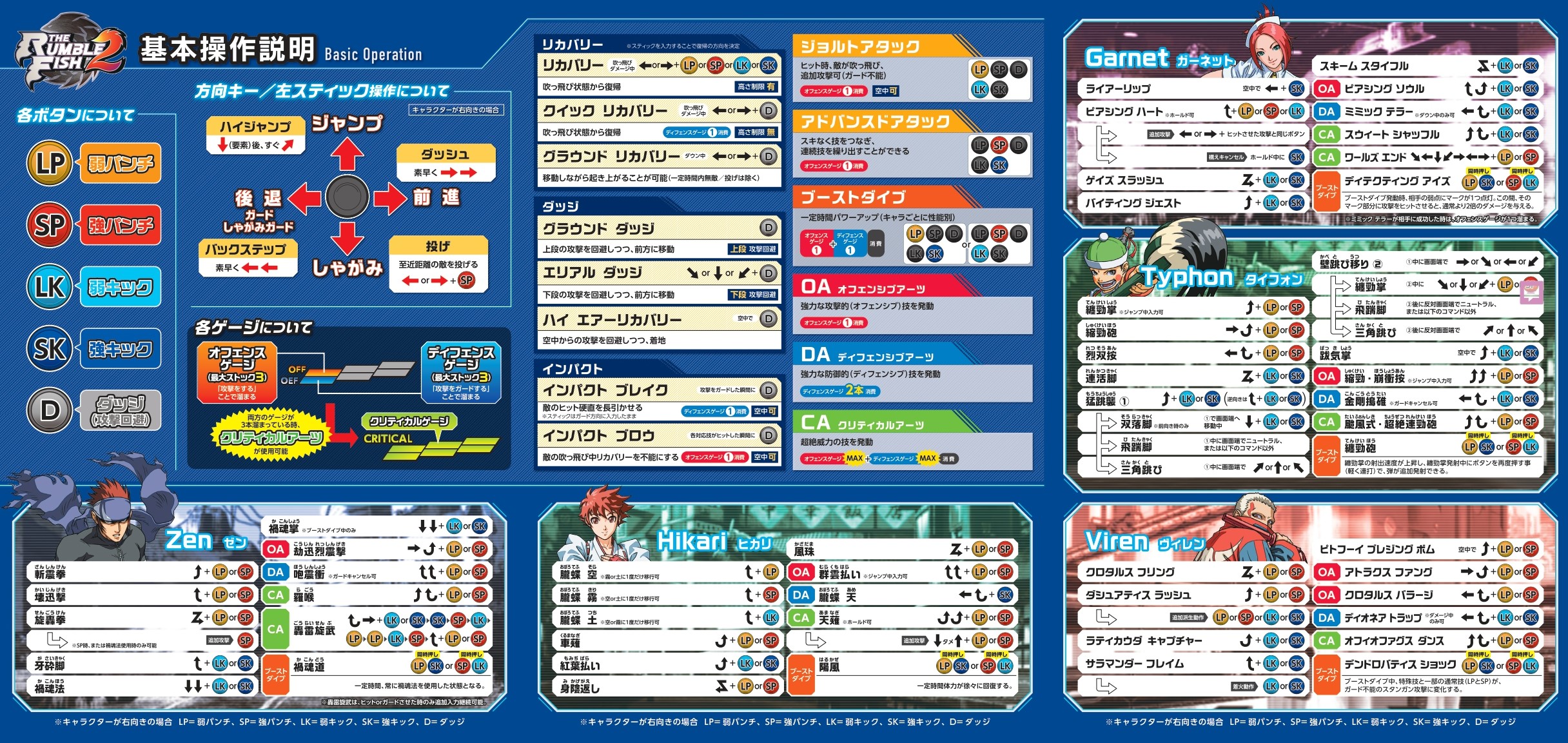 『ザ・ランブルフィッシュ2』の新キャラクター(ラッド、シェリル、ミト、バズウ)が、アドバンスドアタックを使ったコンボのつなぎ方や、インパクトブレイク後の攻防の読み合いなど、対人戦を有利に進めるための戦略をアドバイス。