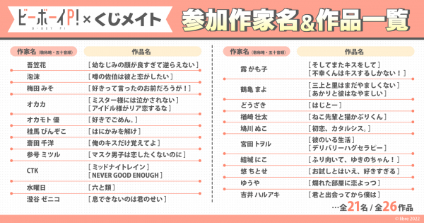 アニメイト通販内のオンラインくじ「くじメイト」に大人気BLレーベル『ビボピーコミックス』の作品たちが登場します。