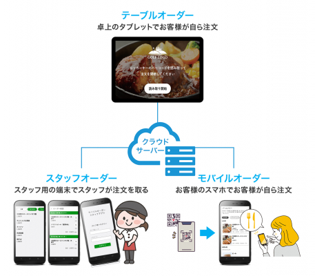 ・お客様のスマホを使用するモバイルオーダー、テーブルとスタッフのオーダーに対応