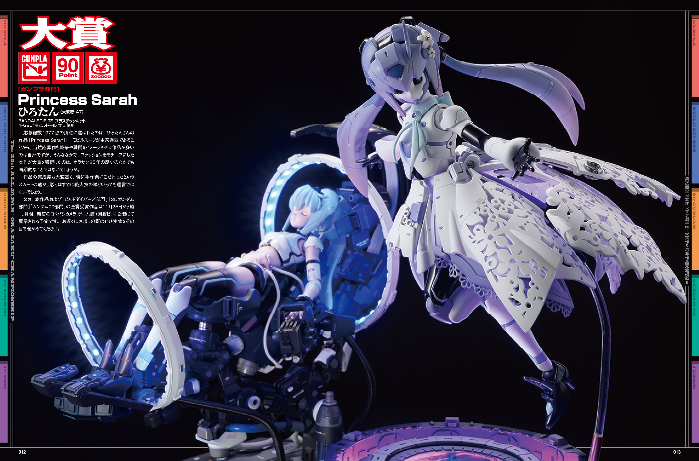 今回はガンプラ部門のほかに、ビルドダイバーズ部門、SDガンダム部門、ガンダム00部門、ジュニア部門の5部門を発表いたします。どの作品も見どころたっぷりの力作ぞろい!25年目を迎えたオラザク選手権を心ゆくまでお楽しみください!