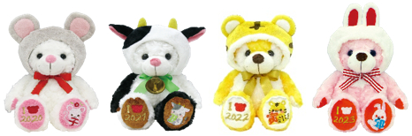 同シリーズは、足裏に西暦と漢字で干支が刺繍されており、ご当地ベアファンの方だけでなく、ご自身や親しい方の干支にちなんだプレゼントとして、また、その年に誕生のお子様のお祝いとしても喜ばれております。