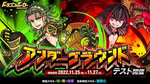 株式会社アソビズム(本社:東京都千代田区、代表取締役:大手智之)は、App Store・Google Playにて好評配信中のリアルタイム合体カードバトル『ドラゴンポーカー』で、2022年11月25日(金)より「アンダーグラウンド」をテスト開催いたします。