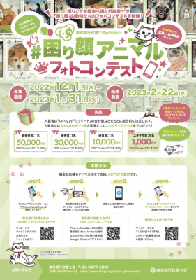 東京都行政書士会では2月22日の行政書士記念日のイベントとして困り顔アニマルフォトコンテストを開催します!