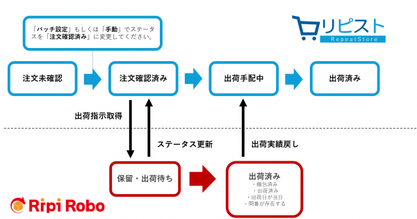 →リピストで「注文確認済み」ステータスの注文を取り込みます。