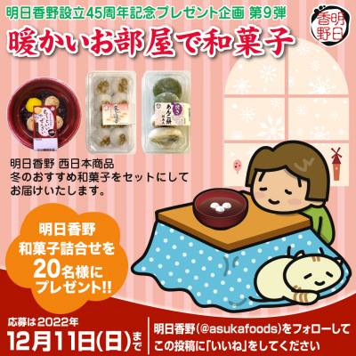 2022年11月28日より、45周年キャンペーンの第9弾「暖かいお部屋で和菓子キャンペーン」を開始しました。