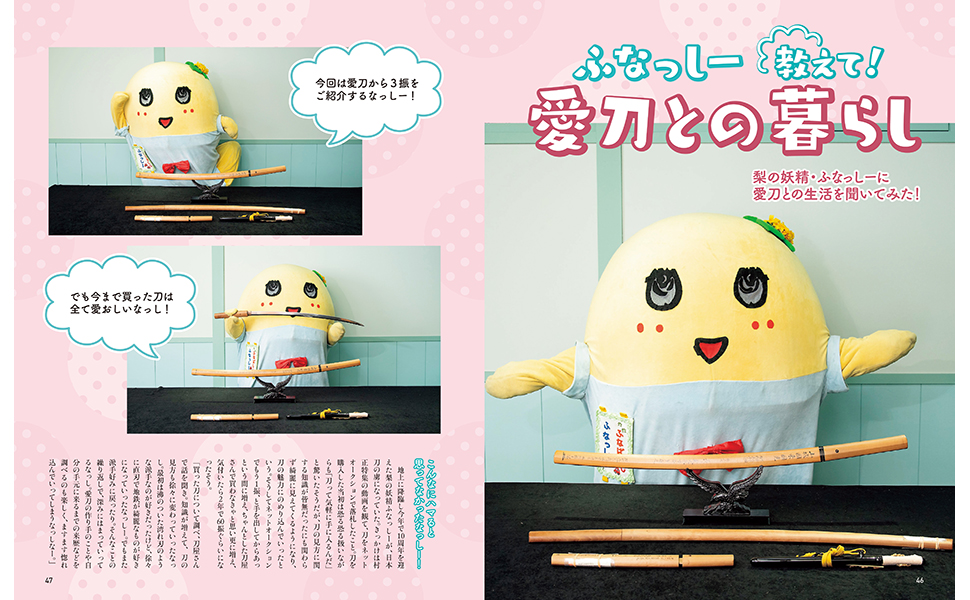 最近、刀剣関連番組への出演が話題のふなっしーのインタビュー&愛刀紹介ページも掲載。