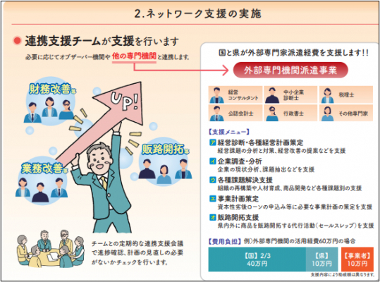 とっとり企業支援ネットワークによる支援を受ける事業者は、経営課題の抽出と具体的な改善策の提案に向け、外部専門機関派遣経費の支援を受けられる制度を利用することができます。