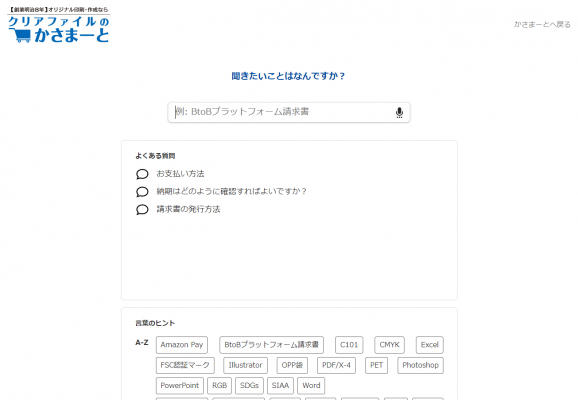 株式会社笠間製本印刷(本社:石川県白山市、代表取締役:田上裕之)は、2022年11月08日からオリジナルクリアファイル印刷の『かさまーと』に、ユーザーのあらゆる質問に答える「Helpfeel(ヘルプフィール)」(https://helpfeel.com/)を導入したことをお知らせいたします。