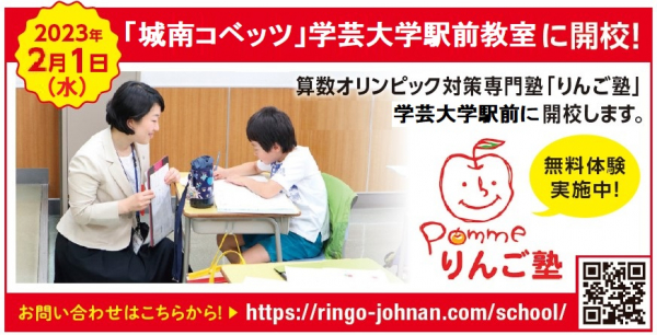 株式会社城南進学研究社(本社:神奈川県川崎市、代表取締役社長CEO:下村勝己、以下「当社」)は、2023年2月1日(水)、当社が運営する個別指導教室「城南コベッツ」学芸大学駅前教室に「りんご塾」を開校します。