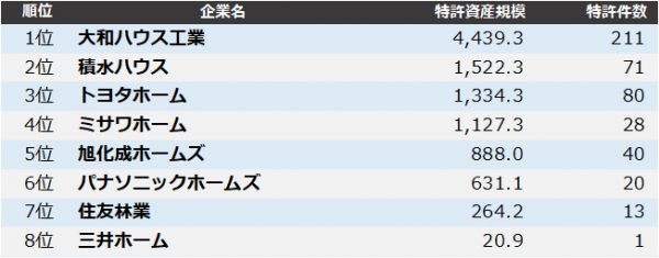 株式会社パテント・リザルトは12月16日、独自に分類したハウスメーカー業界の企業(全8社)を対象に、各社が保有する特許資産を質と量の両面から総合評価した「ハウスメーカー業界 特許資産規模ランキング2022」をまとめました。2021年4月1日から2022年3月末までの1年間に登録された特許を対象に、個別特許の注目度を得点化する「パテントスコア」を用いた評価を行い、企業ごとに総合得点を集計しました。