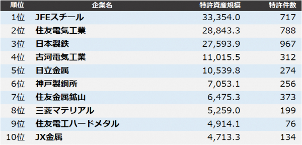 詳細については、ランキングデータ「鉄鋼・非鉄金属・金属製品 特許資産規模ランキング2022」にてご覧いただけます。