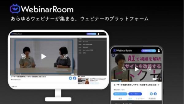 「Webinar Room」は、企業が過去に開催したウェビナーを集め、無料での視聴を可能にしたプラットフォームです。「Webinar Room」に動画を掲載することで、企業側はコストパフォーマンス良く新規見込み顧客の獲得ができ、視聴者は興味のあるウェビナー、過去に見逃したウェビナーをいつでも好きなタイミングで視聴することが可能になります。