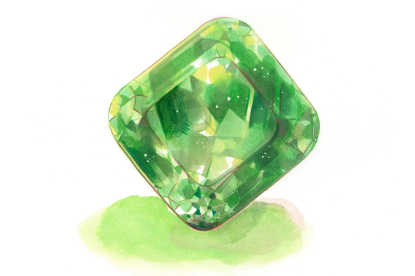 マグネシウムや鉄を含有する橄欖石(かんらんせき)の宝石で透明度が高く、ほの暗い場所でもその鮮やかさを維持することから「イブニング・エメラルド」とも言われる。古くは「太陽の石」として崇拝されたこの宝石は、夢の実現に向けて、前向きな気持ちをサポートしてくれるとされている。