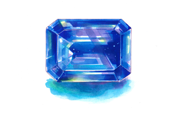 ルビーと同じコランダムの宝石だが、微量に含まれるチタンや鉄によって青く発色する。