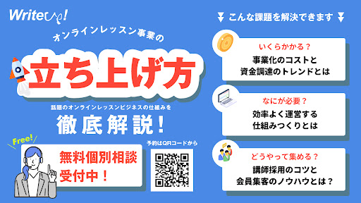 弊社では、「実際にオンラインレッスン事業を立ち上げたいけれど、具体的にどんなことをすればよいかわからない」という経営者向けに、無料の個別相談を行っています。