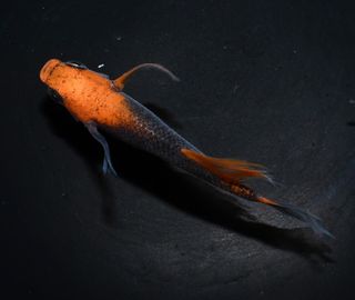 ◆特性 2022年春、岡山県の『静楽庵』から満を持してリリースされたのが“令和黒ラメ幹之サファイア系”である。今までの三色ラメ幹之は、非透明鱗性のためヒレに色を乗せることは難しかったといわれ、その遺伝子を『静楽庵』が発見、命名したのが“令和遺伝子”といわれる。各ヒレに朱色が入り、ラメの乗りも増えた。さらに、透明鱗性のメダカのような体の色抜けをすることもわかり成長具合によって透け具合や色味が変わることも楽しんでもらえるメダカとなっている。ラメ幹之の下地に“サファイア”の大きな青いラメが複雑に入り、各ヒレが朱に染まる姿は見応えがある。(引用協力:(株)ピーシーズ)