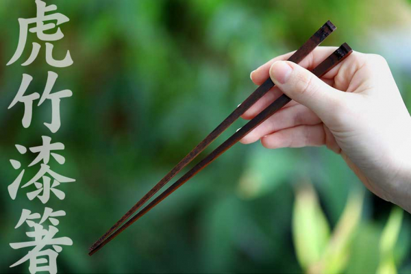 炭化竹漆箸は色づきの芳しくなかった虎竹素材を無駄にしないために炭化加工して漆で仕上げた竹箸。うっすらと美しい虎模様が見え隠れしています。先細で竹特有のしなりがありとても丈夫な竹箸は、小骨の多いお魚が、とても食べやすいと大評判の竹箸です。