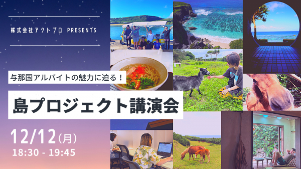株式会社アクトプロは12月12日、与那国コールセンターでの仕事や生活を紹介する「島プロジェクト第一弾“与那国島”講演会」を開催いたします。東京・新橋のアクトプロ本社での現地参加と、Zoomでのオンライン参加のどちらでもご参加いただけます。