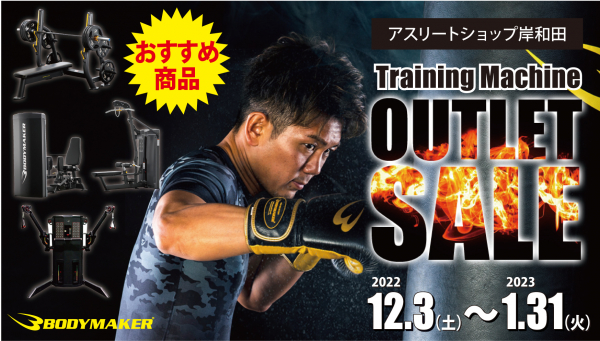 BODYMAKERアスリートショップ岸和田では、12月3日(土)よりトレーニングマシンアウトレットセールを好評開催中!