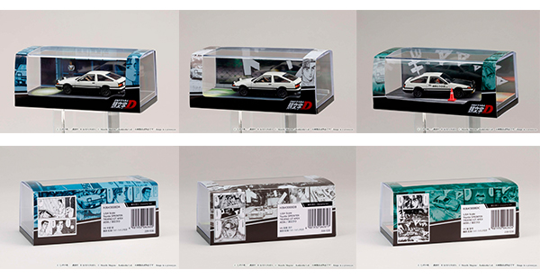 ▲各バトルシーンを彩る専用パッケージ、台座、バックボードが付属します。また本商品には藤原拓海のドライバーフィギュアが付属します。