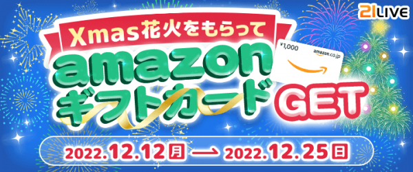 期間中、クリスマス限定ギフトを10,000GOLD分獲得した人全員に、21LIVEからアマゾンギフト券をプレゼント!
