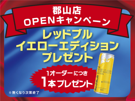レッドブルイエローエディション(250ml缶)を、ご注文1回につき1本プレゼント致します。